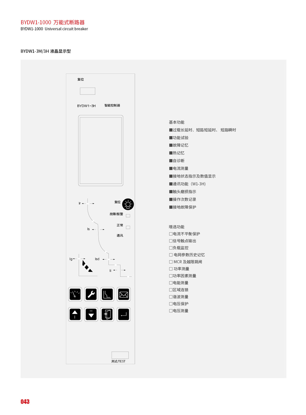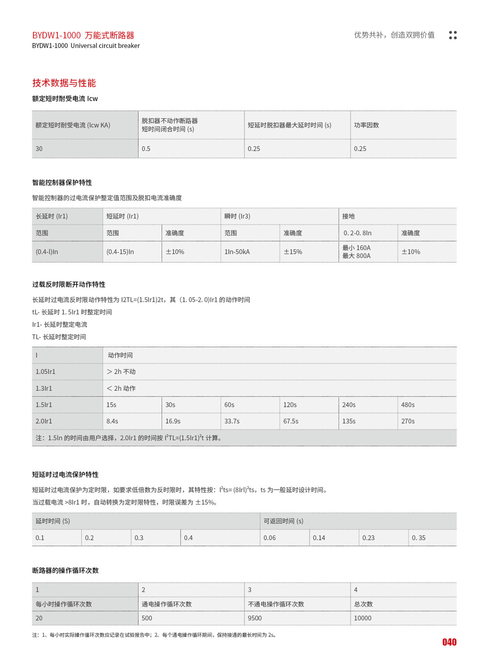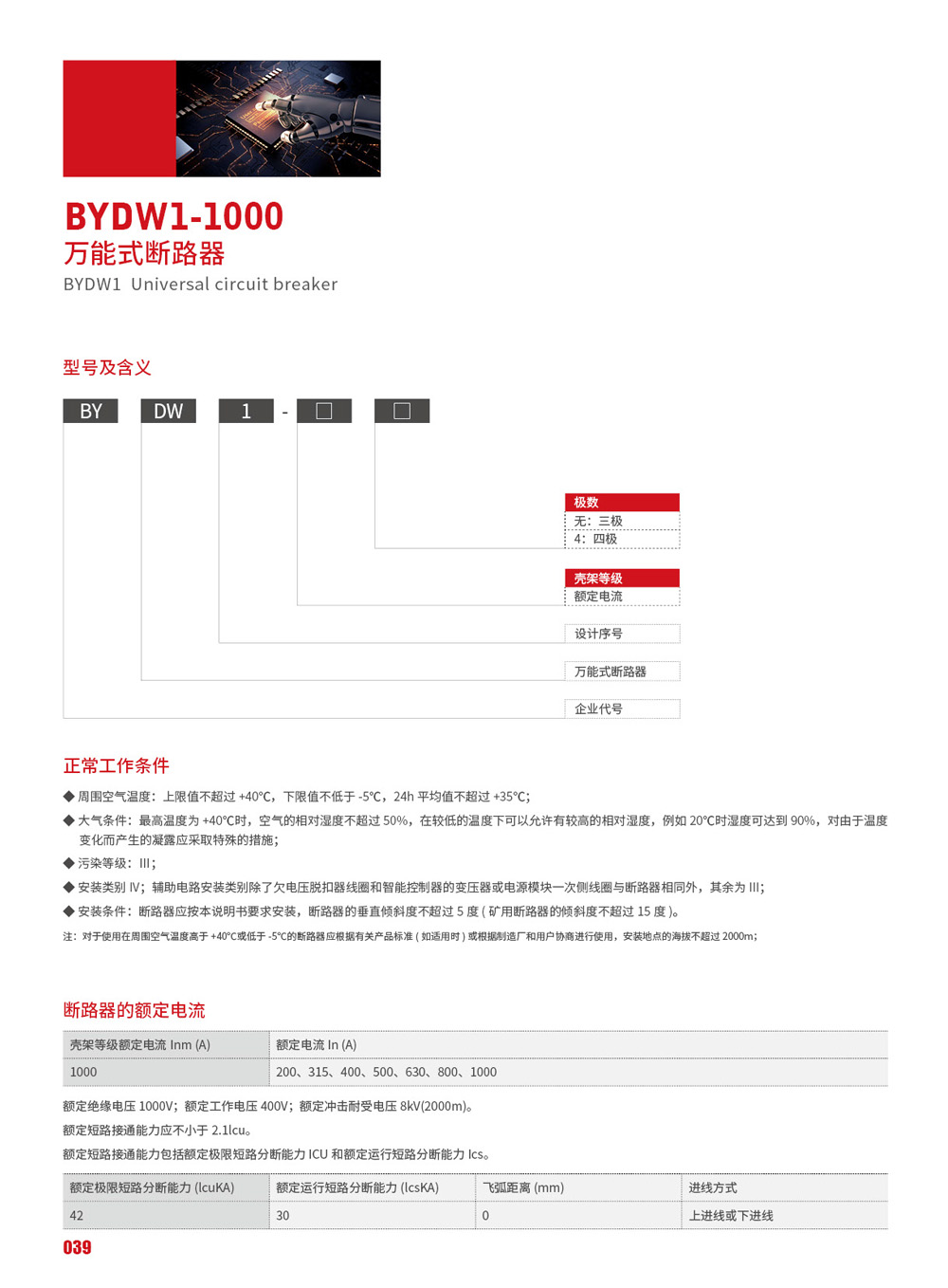 BYDW1-1000 系列万能式断路器(以下简称断路器)的定电流自200A-1000A,额定工作电压交流 690V以下。主要用于配电网络中,用来分配电能,保护线路和电源设备,使之免受过载欠电压、短路、单相接地等故障的危害。在正常条件下也可作为线路的不频繁转换之用。可做到选择性保护,且动作精确,避免不必要的停电,提高供电的可靠性。断路器符合 GB/T14048.2《低压开关设备和控制设备低压断路器》和IEC60947-2《低压开关设备和控制设备断路器》等标准。