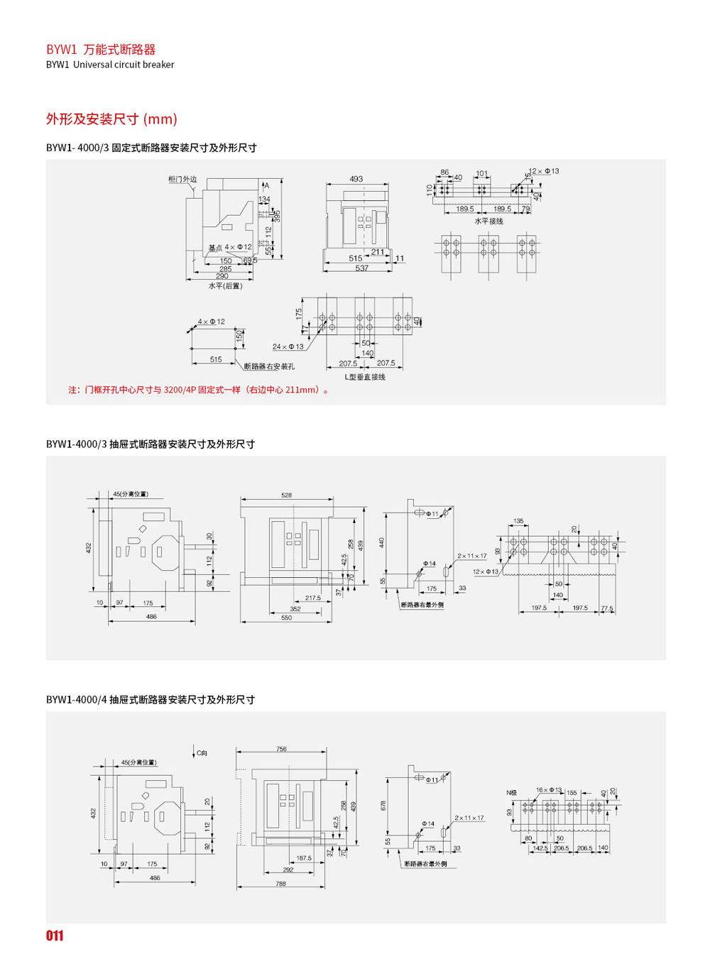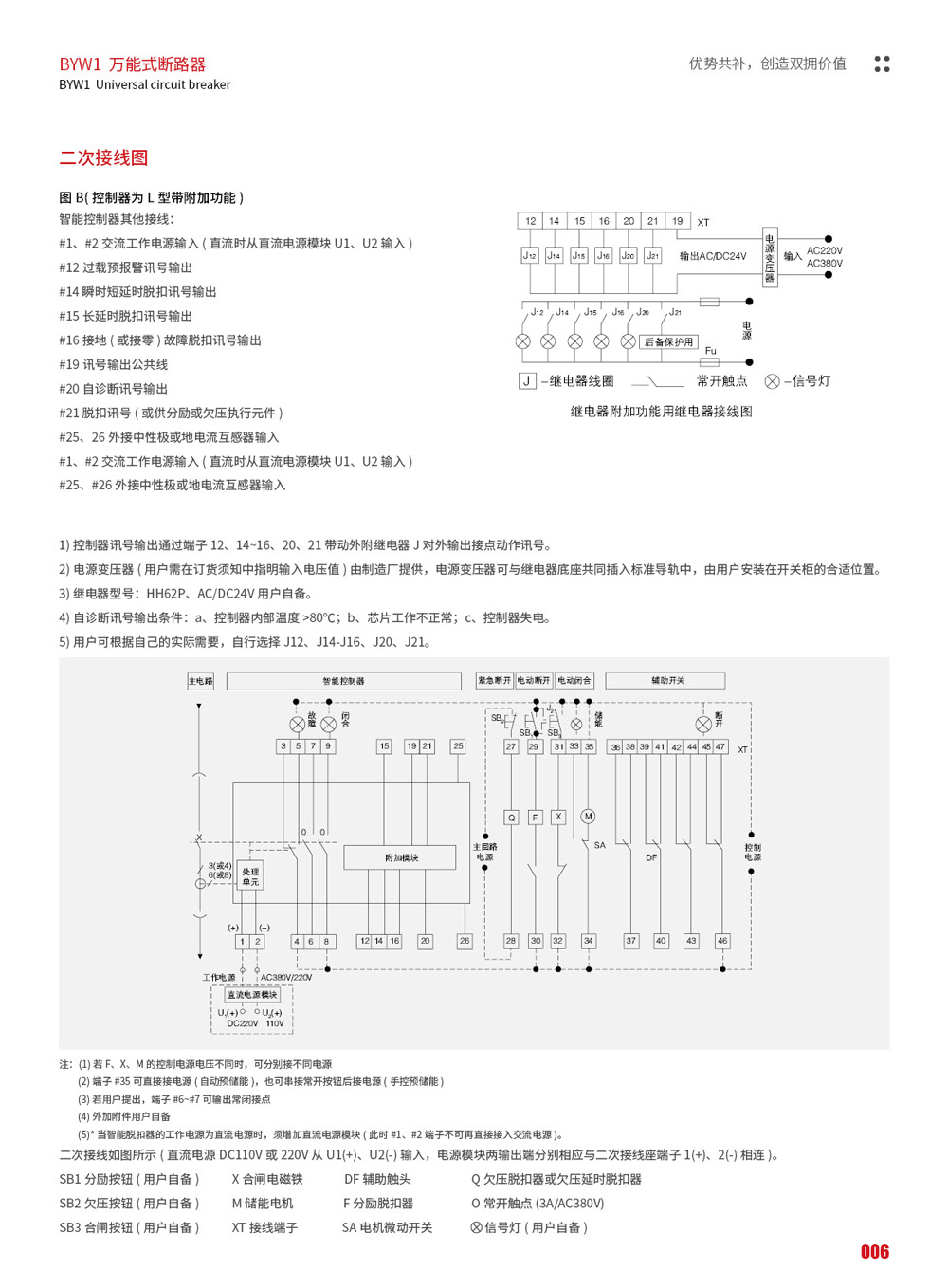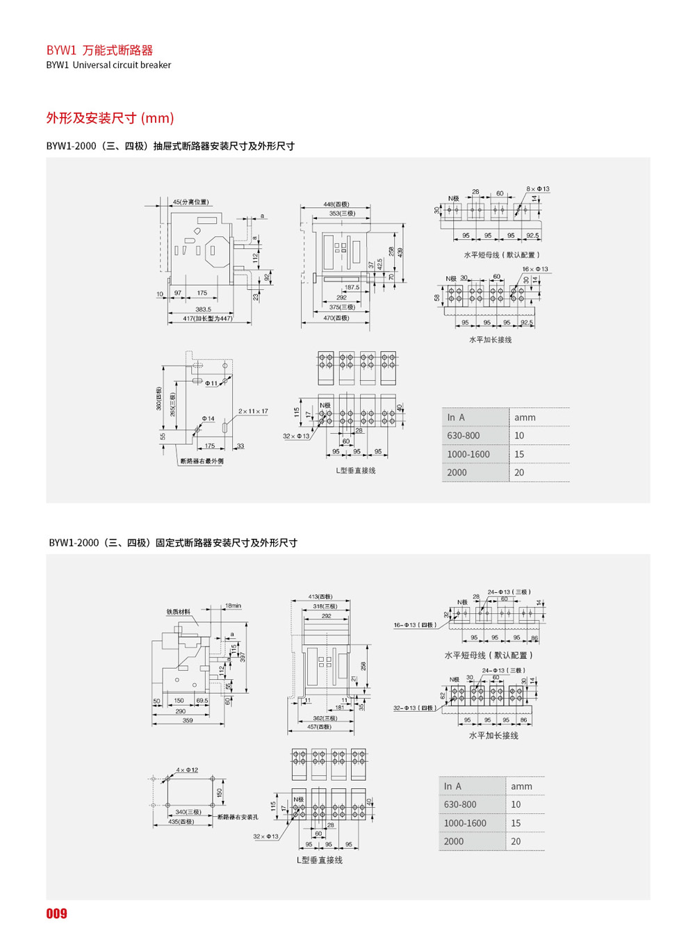 BYW1 系列万能式断路器(以下简称断路器),适用于交流50Hz,额定工作电压至 690V及以下额定电流 200A-6300A的配电网络中,用来分配电能和保护线路及电源设备免受过载、欠电压、短路、单相接地等故障的危害,断路器具有智能化保护功能,有较高精度的选择性保护,提高“遥讯”、了供电可靠性。同时带有标准的 RS485 通讯接口,可进行“测”、“遥控”、“遥调”四遇功能,以满足控制中心和自动化系统的要求。该系列断路器具有结构紧凑、分断能力高、无飞弧距离等特点。断路器不带智能脱扣器及传感器时可作隔离开关用,标示为一个*。