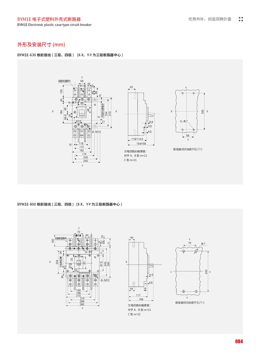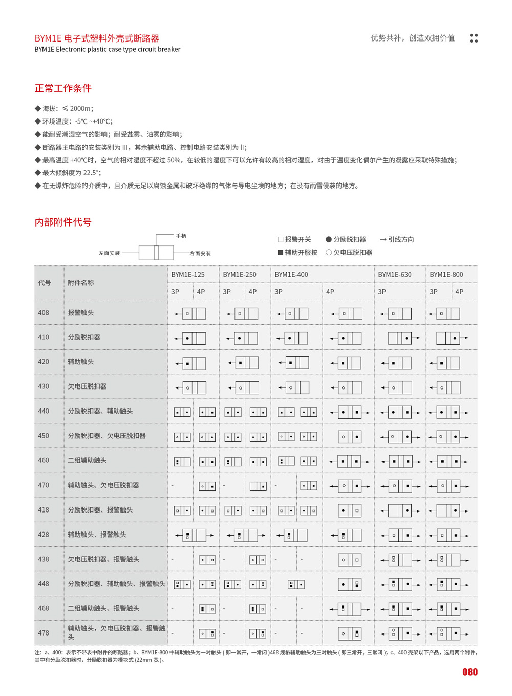 BYM1E系列电子式型料外亮式断路器(以下简称断路器),适用于交流 50Hz(或 60Hz),其额定绝缘电压为 1000V,颜定工作电压690V及以下,额定工作电流至800A的电路中作不频繁转换及电动机不频繁起动之用。断路器具有过载长延时反时限、短路短延时反时限、短路短延时定时限、短路瞬时和欠压保护功能以及剩余电流保护(可选),缺相保护功能(可选),能保护线路和电源设备不受损坏,断路器保护特性齐全、精确,能提高供电可靠性,避免不必要的停电。断路器按照其额定极限短路分断能力,分为M型(较高分断型)、H型(高分断型)二种。该断路器具有体积小、分断能力高、飞弧短、抗振动等特点。断路器可垂直安装(即竖装),亦可水平安装(即横装)。断路器具有隔离功能,其相应符号:“/-x-