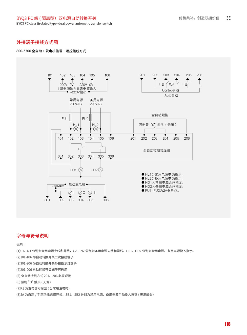 BYQ3 双电源自动转换开关(AT.S.E),是集开关与逻辑控制于一体,无需外加控制器,真正实现机电一体化的自动转换开关,具有电压检测、频率检测、通讯接口、电气、机械互锁等功能,可实现自动、电动远程、紧急手动控制。操作是由逻辑控制板以各种逻辑命令来管理电机、变速箱的操作运行来实现,电机带动开关弹簧蓄能,瞬时释放的加速机构,快速接通分断电路或进行电路转换,通过明显可见状态实现安全隔离,极大的提高了各项电器性能与机械性能。BYQ3 开关整体设计为金属外亮,小巧坚固。BYQ3开关,控制部分为金属外亮,开关外亮部件采用玻璃纤维不饱和聚脂树脂制造,具有较强的介电性能、防护能力和可靠的操作安全性。开关适用于供电系统的主电源与备用电源之间自动转换或两台负载设备的自动转换及安全隔离等。