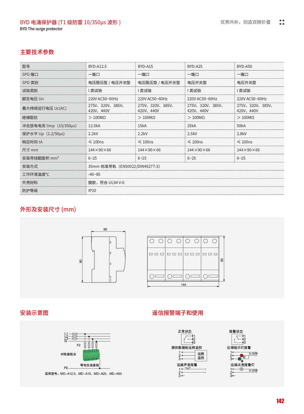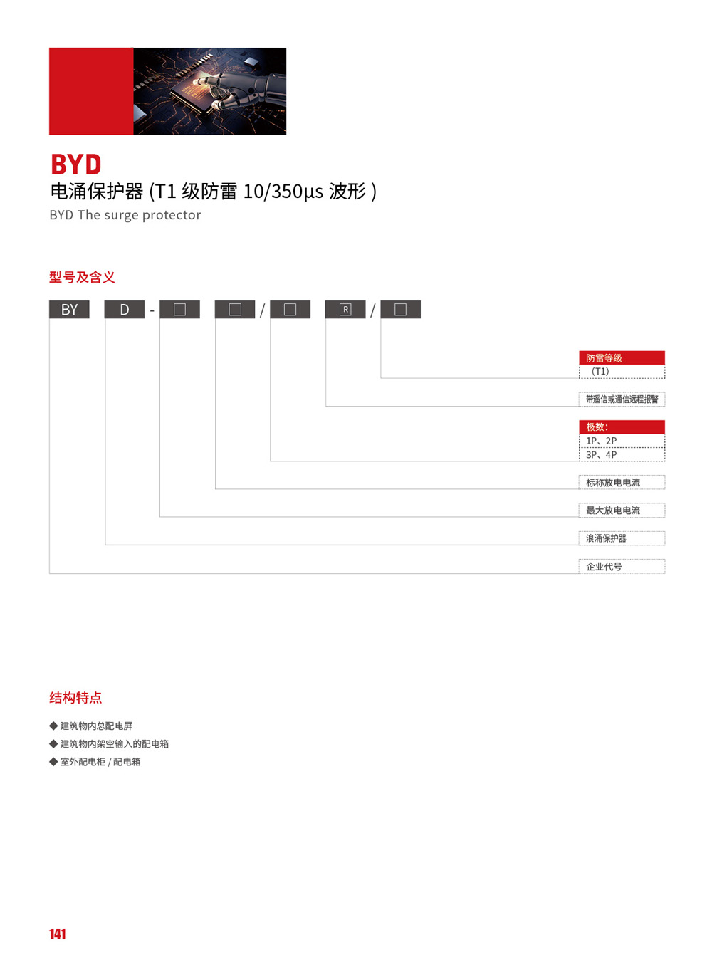 BYD 电涌保护器(T1级防雷 10/350μs 波形)