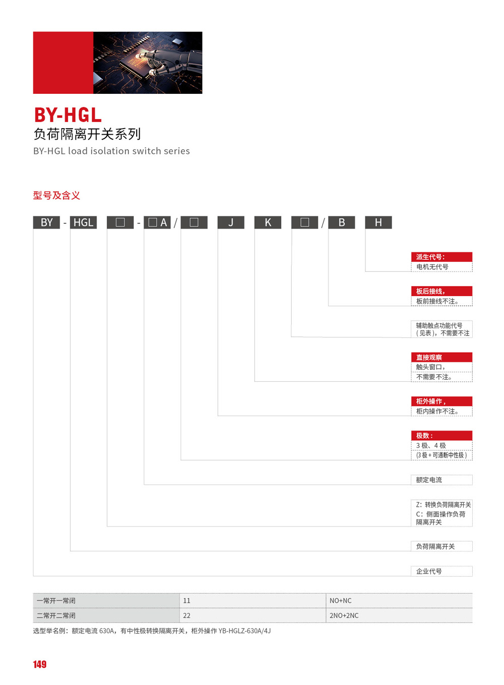 BY-HGL系列负荷隔离开关从 63-4000A分18个规格是模块化设计基础型,具有三极,四极(三极+可通断中性极),适用于电路和接通与分断或电气隔离,1000A以上只做电气隔离。交流50 赫兹,颜定电压至 1000V,直流额定电压至 440V,额定电流至 4000A。用于不频繁接通与分断电路。